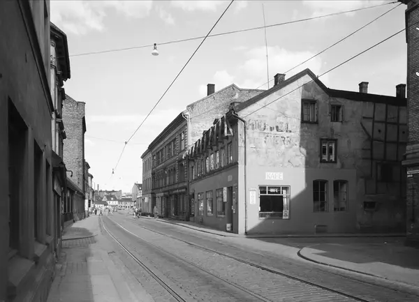 gateløp, bygårder, gatelegeme, brostein, trikkeskinner