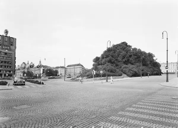 gatekryss, trafikklys, gatebelysning, biler, mennesker, kontorbygninger, park, Slottet, gatelegeme, brostein