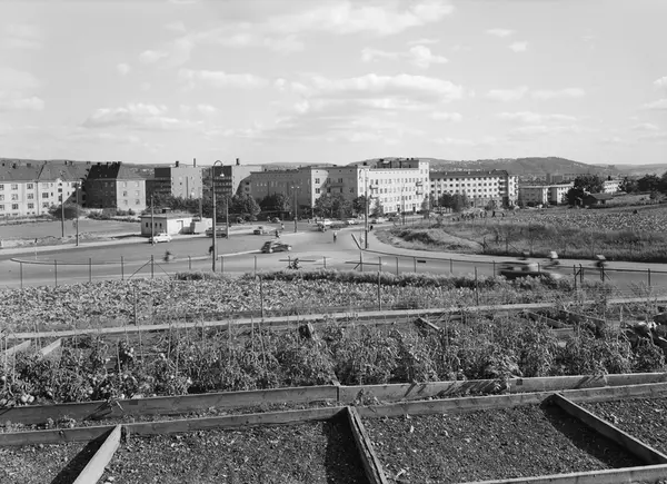 Arkitekt Rivertz plass sett fra Geitmyra skolehager.