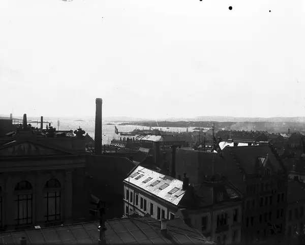 utsikt, hustak, Frimurerlogen, forretningsgårder, fabrikkpipe, havn, fjord