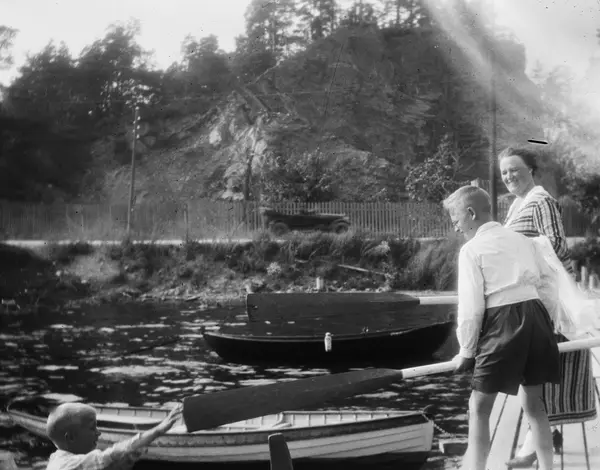 fjord, strand, gutter2, kvinne, robåter, vei, bil