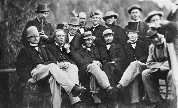 Stående bak fra venstre: Holger Collett, Stener Rosenberg, Christian Lasson, Michael Müller, Vincent Ihlen, Niels Nicolaysen og Hartvig Lassen. Sittende foran fra venstre: Herman Løvenskiold, Johan Randers, Johan Keyser, Jørgen Heftye, Christian Schlytter og Johan Andresen.