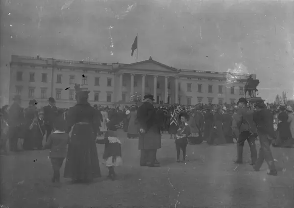 17. mai-feiring, mennesker, flagg, rytterstatue, Slottet