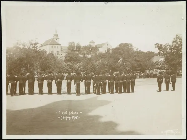Festningsplassen, gardister, oppstilling, publikum, Akershus festning, heising av flagg