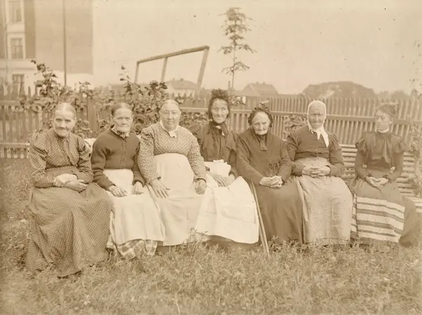 hage, benk, gruppe, gamle kvinner6, kvinneforening, prestefrue