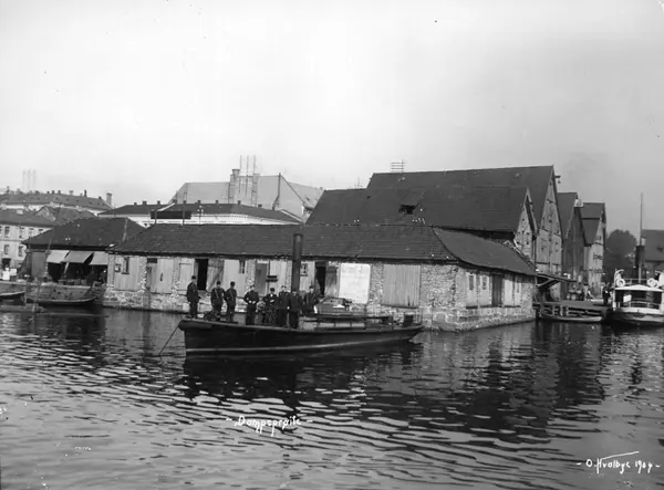 brannvesen, sjøbrannkorpset, båt, brannsprøyte, dampsprøyte, brannmenn, sjøboder
