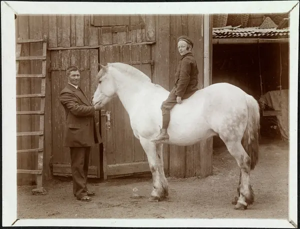 gårdsinteriør, mann, hest, gutt