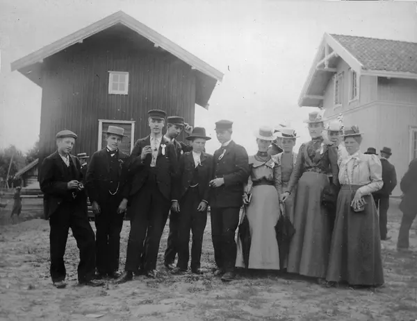 Muligens landtur til Smedsrud, Oppegård 12.06.1904. (C.Hansteen: Chr. Indremisjon 1855-1904) Oscar Hvalbye (1864-1938) tok teologisk embetseksamen 25 år gammel. Han arbeidet for bymisjonen (Kristiania Indremisjon) og var prest i Sagene menighet. Som ivrig amatørfotograf samarbeidet han med sin gode venn Anders B. Wilse. Han var virksom i Oslo i perioden ca 1890-1920. Hans fotosamling ble i 1986 gitt til Oslo Bymuseum.