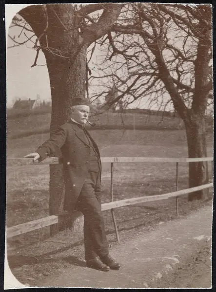 mann, prest, amatørfotograf, stående helfigur, pipe, gjerde, jorde