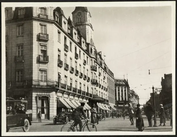 gateløp, Grand Hotel, biler, mennesker, syklist, gateliv, forretningsgårder
