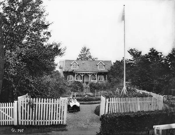 Ekteparet foran er urmaker Jens Smith og hans kone Wilhelmine Smith. De kjøpte Bekkestuen i 1870-årene.