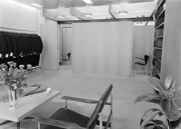 Ferner Jacobsen herrekonfeksjonsforretning, interiør, utstilling, varer