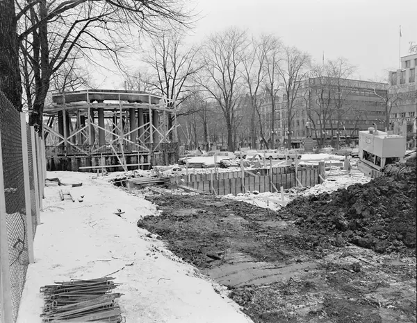anleggsarbeid, NSB jernbanetunnel, øst-vest-forbindelse, Oslotunnelen, musikkpaviljong, gjenoppbygging, forretningsgårder