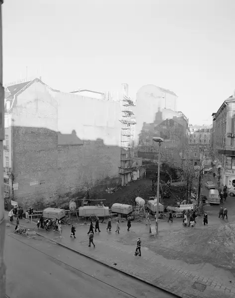 byggetomt, Grand Hotels tilbygg, anleggsarbeid, forretningsgårder, Oslo nye teaters scenetårn