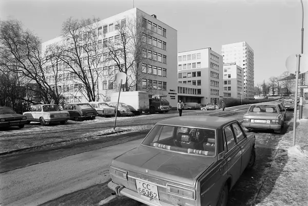 gateløp, kontorbygninger, boligblokker, biler, Sagene skole
