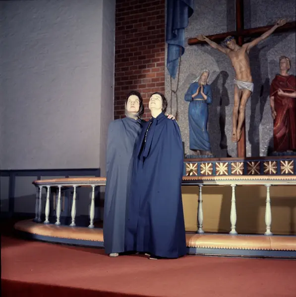 Majorstuen kirke, interiør, kirkespill, påskespill, skuespillere