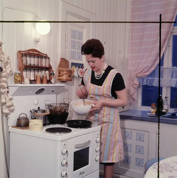bolig, interiør, kjøkken, kvinne, skuespiller, komfyr, matlaging