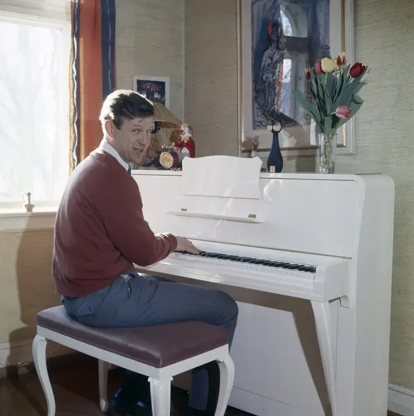 bolig, interiør, stue, mann, artist, sittende ved piano