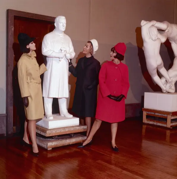 Trine, Unn og Hellen viser drakter og kåper i Vigeland-museet. Rigmor Dahl Delphin (1908-1993) var ansatt som fotograf i ukebladet Alle Kvinner. Hennes negativarkiv ble i 2005 overført Oslo Bymuseum fra Gyldendal Norsk Forlag som var utgiver av bladet.