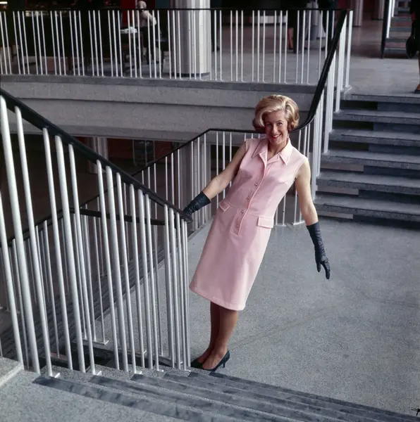 Oslo lufthavn Fornebu, interør, trapp, kvinne