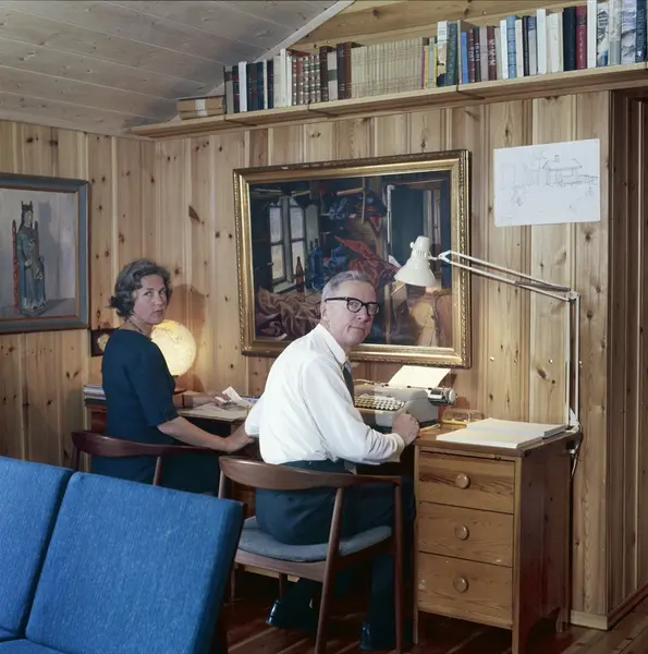 bolig, interiør, stue, skrivebord, mann, forfatter, kvinne