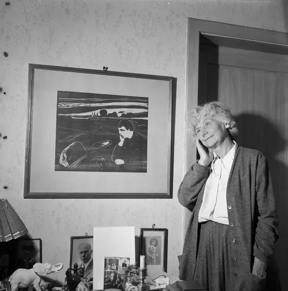 bolig, interiør, portrett, kvinne, kunsthistoriker, forfatter, Munch-grafikk