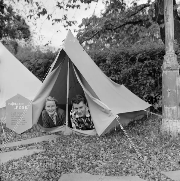 Frogner Hovedgård, Oslo Bymuseum, campingutstilling, telt, mann, kvinne