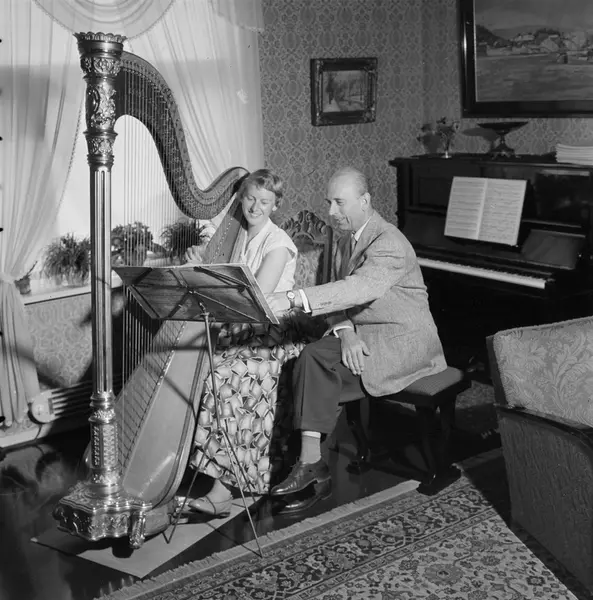 bolig, stue, mann, kvinne, musikere, harpister, undervisning, harpe, piano