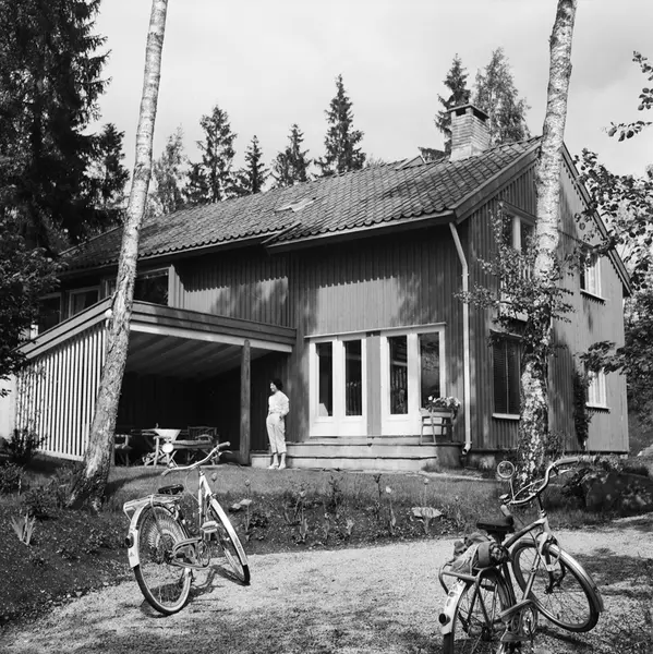bolighus, hage, kvinne, sykler