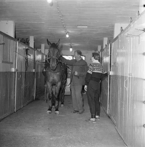 Bjerke Travbane, interiør, stall, kvinne, mann, hest