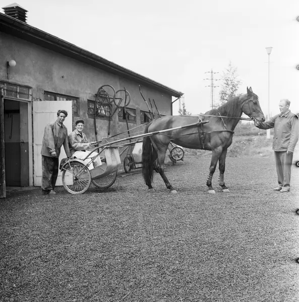 Fotografert i forbindelse med "Drømmedag på Bjerkebanen" for Randi Borgen fra Lier. Rigmor Dahl Delphin (1908-1993) var ansatt som fotograf i ukebladet Alle Kvinner. Hennes negativarkiv ble i 2005 overført Oslo Bymuseum fra Gyldendal Norsk Forlag som var utgiver av bladet.