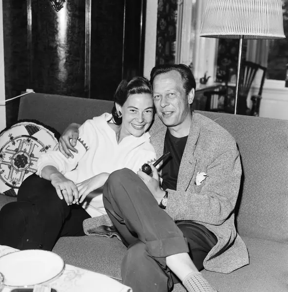 leilighet, interiør, stue, dobbeltportrett, ektepar, skuespillere, sittende i sofa