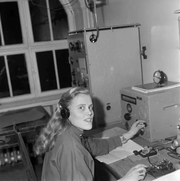 interiør, telegrafstasjon, kvinne, radiotelegrafist