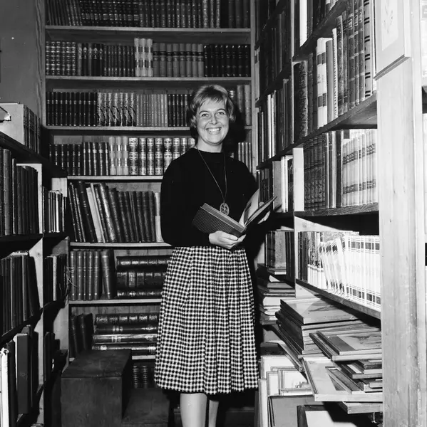 Fotografert for Alle Kvinners serie "Yrker". Rigmor Dahl Delphin (1908-1993) var ansatt som fotograf i ukebladet Alle Kvinner. Hennes negativarkiv ble i 2005 overført Oslo Bymuseum fra Gyldendal Norsk Forlag som var utgiver av bladet.