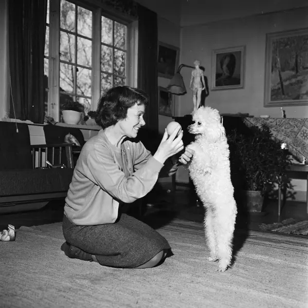 bolig, interiør, stue, kvinne, forfatterinne, hund, puddel
