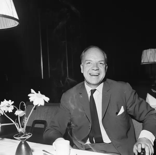portrett, mann, skuespiller, sittende halvfigur ved restaurantbord, sigarett