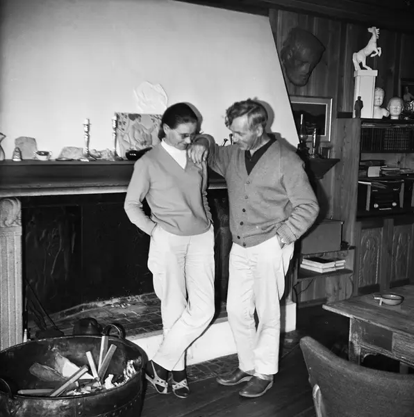 bolighus, interiør, stue, ektepar, mann, billedhugger, kvinne, forfatter, peis