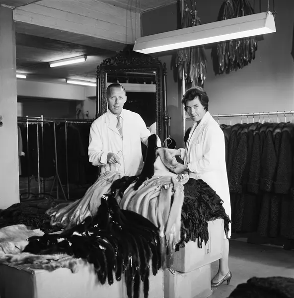 Thomassen & Thomassen (Thoma) konfeksjonsfabrikk, interiør, mann, kvinne, pelsverk