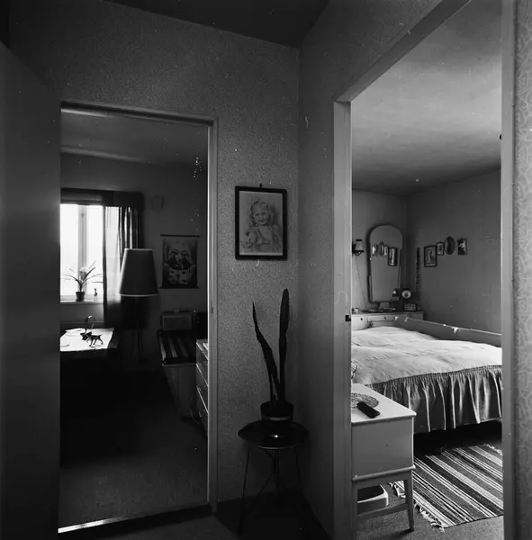 boligblokk, eldrebolig, interiør, leilighet, gang, soverom