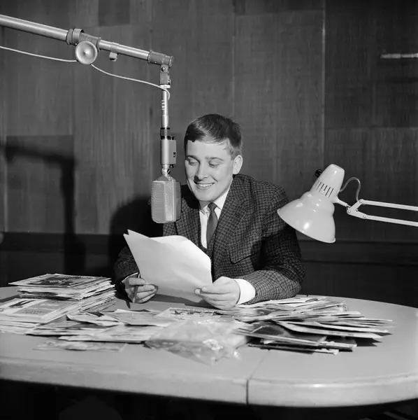 Norsk rikskringkasting, interiør, studio, mann, musikkjournalist, programsekretær, mikrofon, grammofonplater