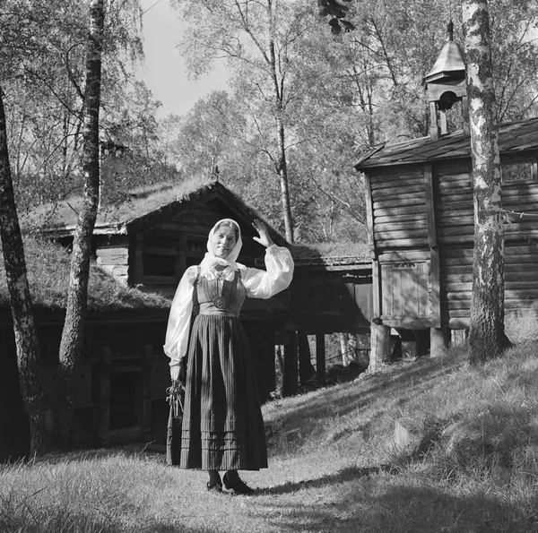 Bjørnsgard, kvinne, skuespiller, nøkkelknippe, tømmerhus, stabbur