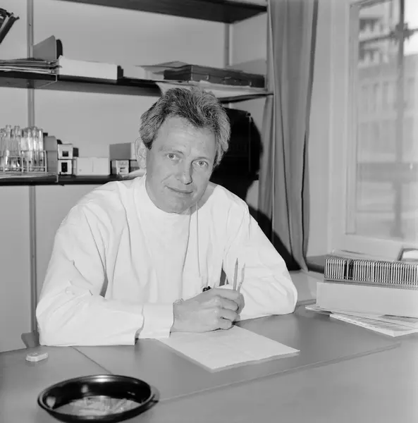 Rikshospitalet barneavdeling, interiør, kontor, mann, lege, sittende halvfigur ved skrivebord