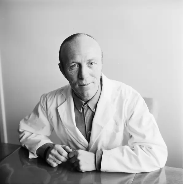 Solvang sykehjem, interiør, kontor, lege, sittende halvfigur ved skrivebord