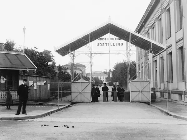 Den norske Industri- og Kunstutstilling, inngangsportal, mennesker, vekslingskontor, Universitetet