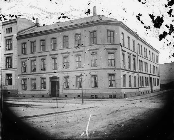 Universitetsgata 18 med nr. 16 til venstre og Kristian IVs gate 15 til høyre.