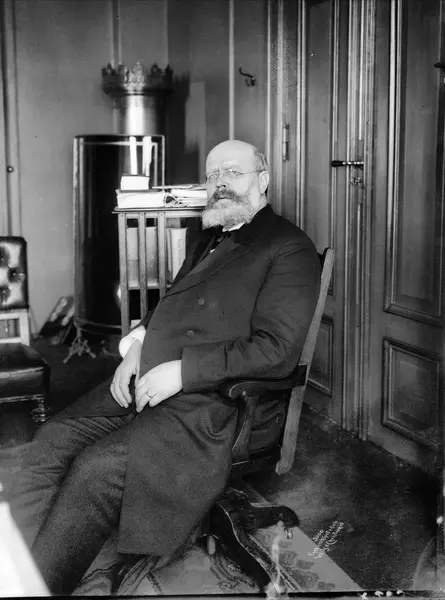 Bildet er etter all sannsynlighet tatt på Victoria Terrasse, der det nyopprettede Utenriksdepartementet fikk sine lokaler sommeren/høsten 1905. Jørgen Løvland, som var norsk statsminister i Stockholm fram til unionsoppløsningen 7. juni 1905, ble UD første sjef.