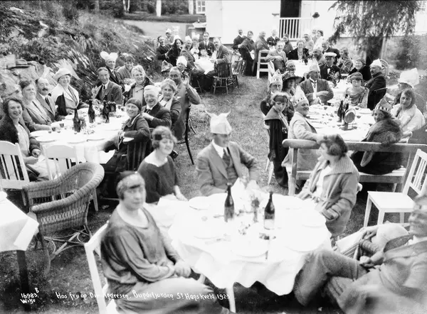 hage, hagemøbler, oppdekning, mennsker, St. Hansfeiring