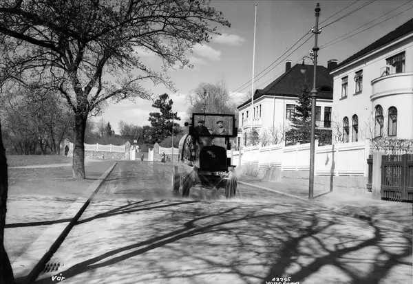 gate, lastebil, vanntank, vannvogn, gaterengjøring, villaer, hager, gjerde