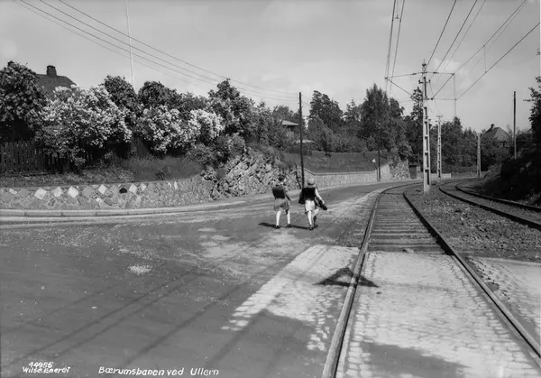 vei, trikkelinje, Ullern stasjon, villabebyggelse, barn