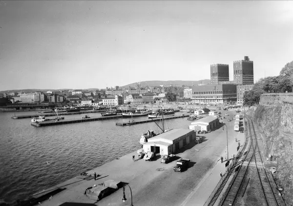 Rådhusbryggene og Rådhuset sett fra Akershus festning